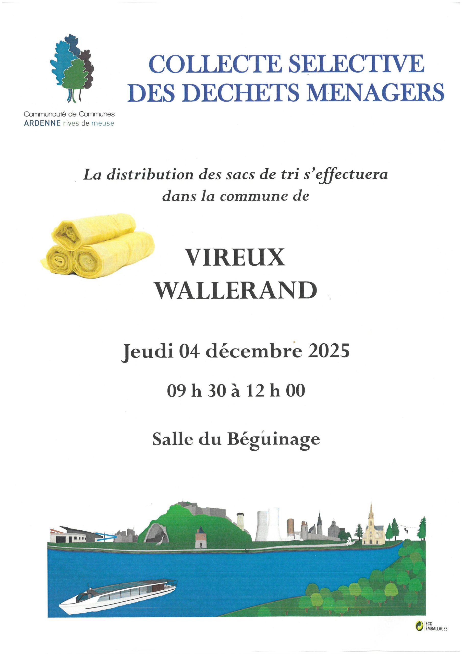 Distribution des sacs de tri le jeudi 4 décembre au Béguinage