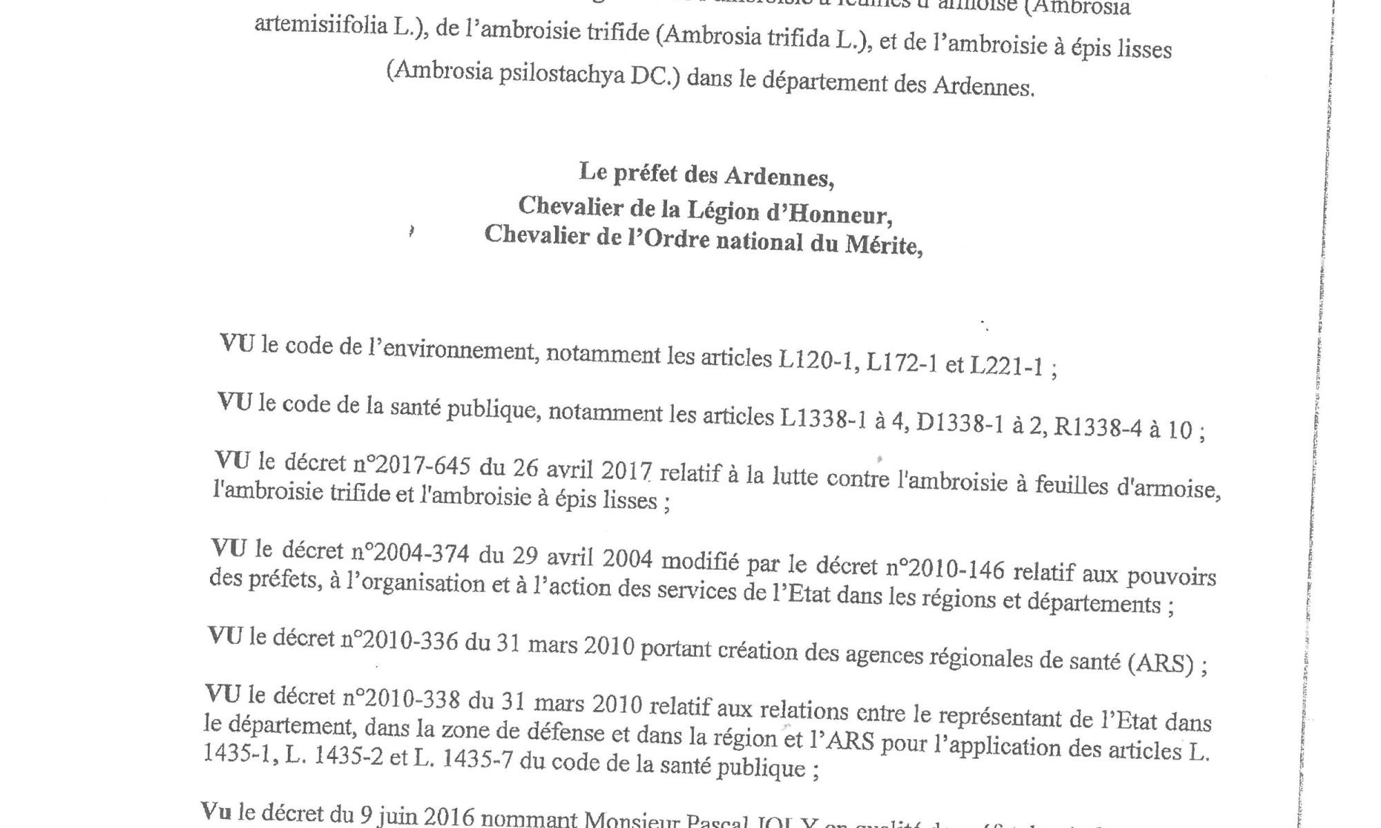 Arrêté préfectoral prescrivant la destruction de l’Ambroisie